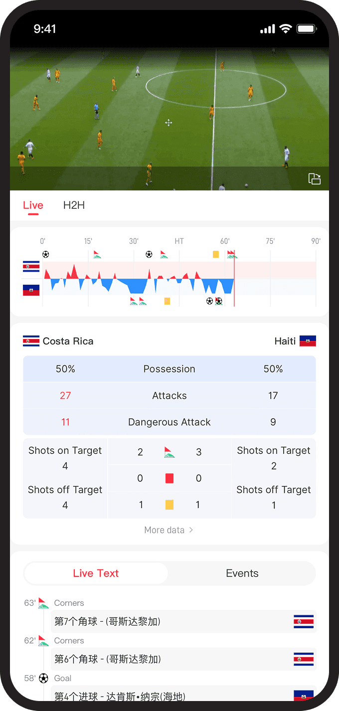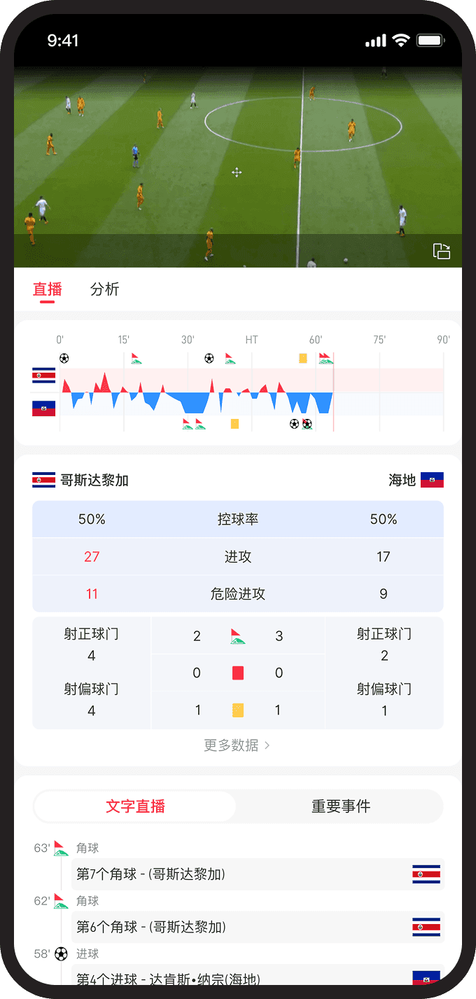 即時推送賽場每一個關鍵事件,不錯過任何一個精彩瞬間足球