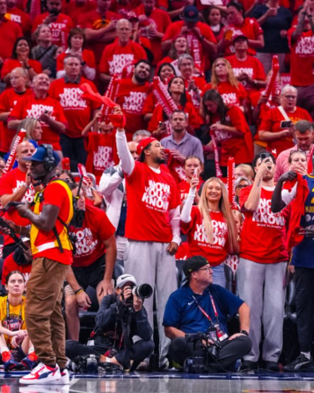 本場比賽,處於傷後恢復期的步行者當家球星哈利伯頓和狂熱當家球星克拉克均在現場助威。哈利伯頓更是和球迷一起穿上了印有“現在你懂了”字樣的紅色助威T恤,並賣力地揮動圍巾爲狂熱吶喊。