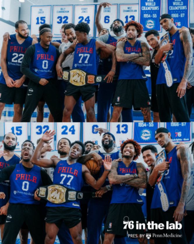 76人官方繼續放出季前訓練的照片,在今天最新發布的這組照片中,有一張引發社媒熱議。