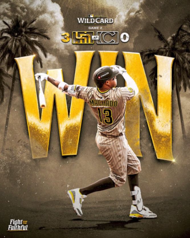 Manny Machado第5局對日本左投今永昇太擊出2分全壘打,取得關鍵領先。教士投手輪換表現穩健,先發Dylan Cease投3.2局無失分,Adrian Morejon接手2.1局拿下勝投,Mason Miller火力全開,連續三振對手,成功壓制小熊打線。系列賽決勝戰將在瑞格利球場進行。