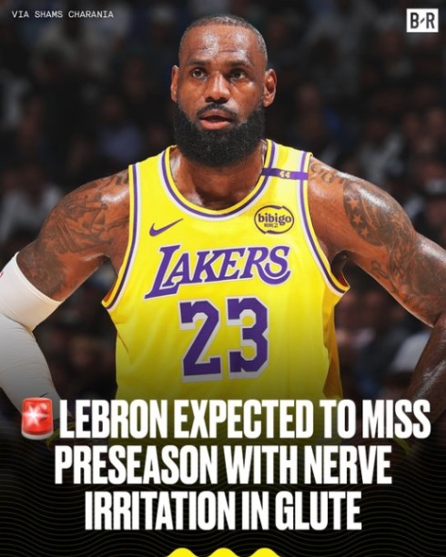 報道稱,LeBron目前正在處理臀部神經刺激的問題,希望全力準備例行賽揭幕戰,因此可能不會在季前賽登場。