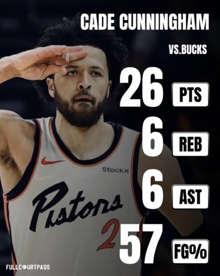 Cade Cunningham首發出戰19分鐘,14中8高效拿下26分,同時送出6籃板6助攻2抄截,正負值是全場最高的+13。