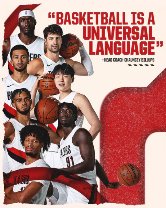 主帥Chauncey Billups指出"籃球是一種通用語言",這番話凸顯了我們陣容中球員國籍的多樣性。