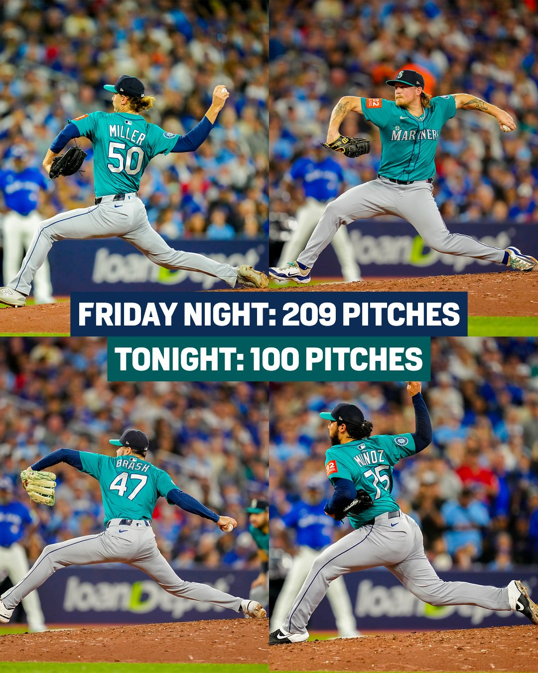 在前天用209球投15局後,今日水手投手羣僅用100球擊敗藍鳥。是自2018年道奇NLDS擊敗勇士後,取得季後賽勝利最少用球數。而這兩戰水手牛棚13局僅被敲5支安打失1分,包括今日三局無安打無失分是水手二連勝的關鍵。