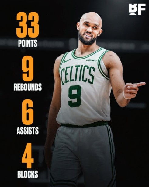 本場比賽中,Derrick White充分釋放自己的遠投慾望,在外線出手17次,命中6球,全場合計23投10中,得到33分9籃板6助攻4阻攻。