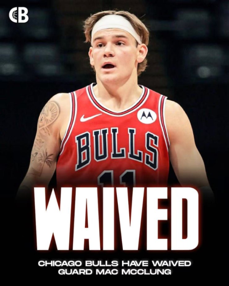芝加哥公牛隊在簽下後衛Mac McClung三小時後將其裁退。