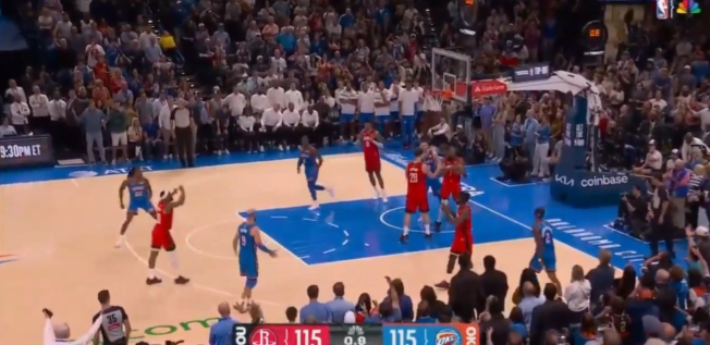 眼見裁判沒有表示,雷霆眾人向裁判組抗議,但裁判拒絕判罰,兩隊以115-115的比分進入第二個加時。