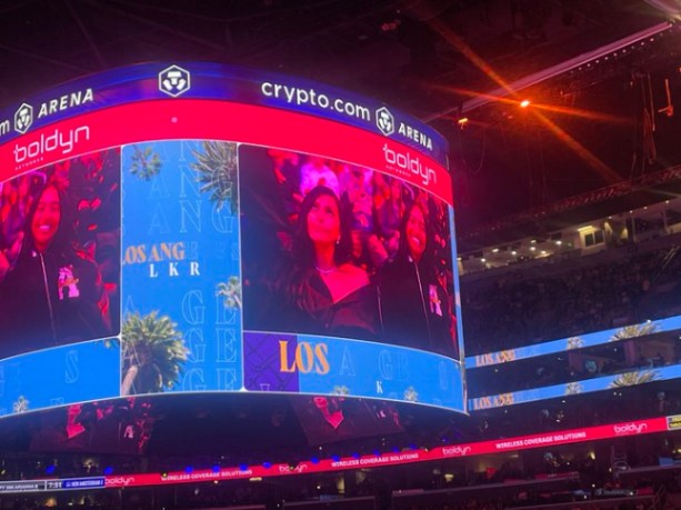 Kobe遺孀瓦妮莎和女兒娜塔莉亞來到現場觀賽,大屏幕放出攝像拍到兩人的畫面,現場球迷也為兩人送上掌聲。