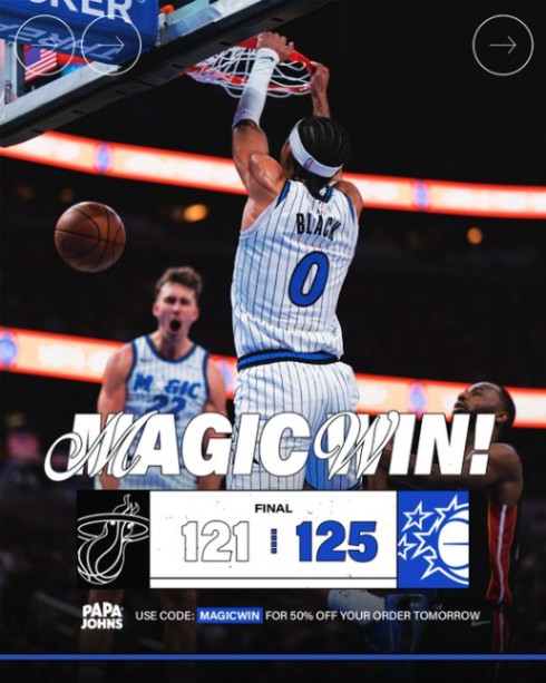 此役魔術三大主將表現出色,Banchero 17中7得到24分11籃板,Franz Wagner貢獻24分4籃板6助攻,新援Desmond Bane交出23分。