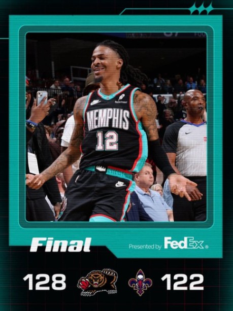 今日NBA例行賽,灰熊憑藉第三節一波41-22的攻擊波128-122逆轉鵜鶘。