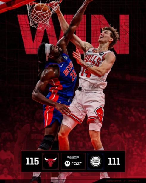 今日NBA例行賽,活塞在客場111-115不敵公牛。