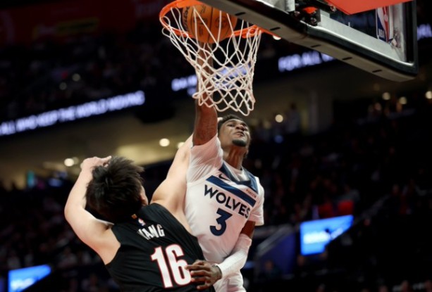 今日灰狼逆轉拓荒者賽後,Anthony Edwards接受採訪時表示,他也覺得McDaniels隔扣楊瀚森的扣籃太過殘暴。