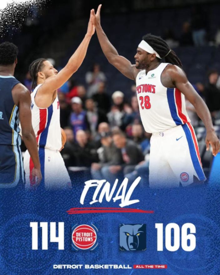 Cade Cunningham33分5籃板8助攻;Jalen Duren14分9籃板;Isaiah Stewart26分14籃板;Ron Holland14分。灰熊方面,Ja Morant18分6籃板10助攻;Jaren Jackson Jr21分2阻攻;Cedric Coward17分6籃板;Jock Landale13分。