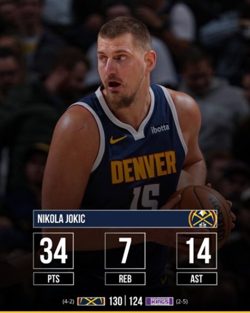 今日NBA例行賽,金塊坐鎮主場130-124擊敗國王,將戰績提升至4勝2負。
