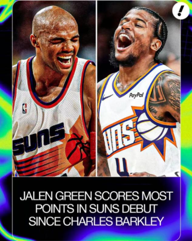 NBA例行賽太陽115-102戰勝快艇。Jalen Green在首秀中砍下29分3籃板3助攻,這是自1992年11月7日Charles Barkley(37分)之後,太陽球員在球隊首秀中的最高得分。