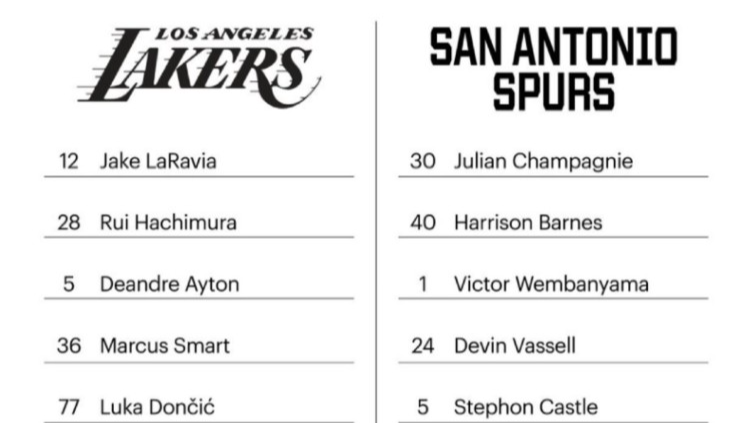 湖人vs馬刺先發公佈:東契奇對決文班亞馬