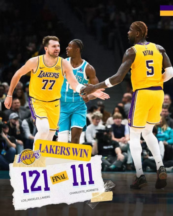 Luka Doncic38分6籃板7助攻;Austin Reaves24分5籃板7助攻;Deandre Ayton14分6籃板;Rui Hachimura21分。黃蜂方面;Miles Bridges34分8籃板5助攻;Kon Knueppel19分10籃板9助攻;Collin Sexton13分3助攻。