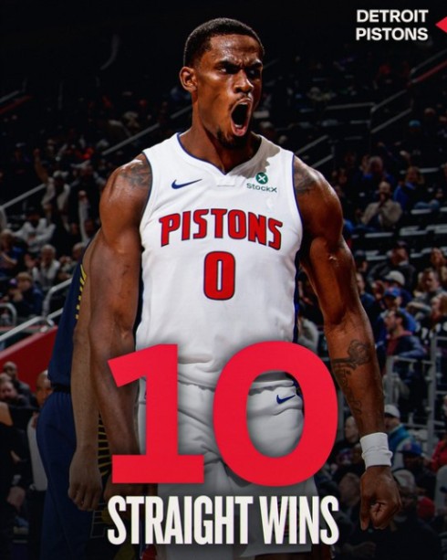 活塞豪取10連勝,以2.5勝場優勢領跑東區