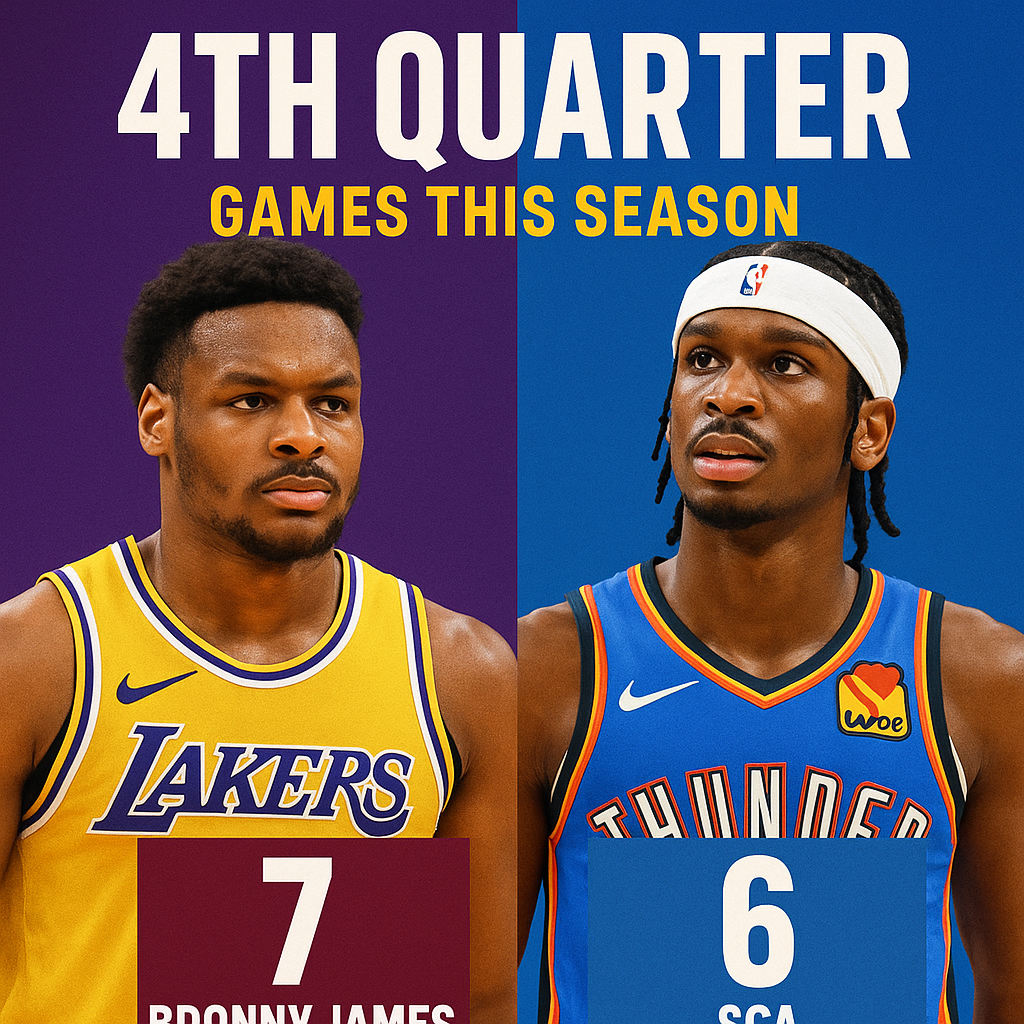 根據統計,本賽季Bronny James已7次在第四節比賽中登場,比SGA還要多一次!