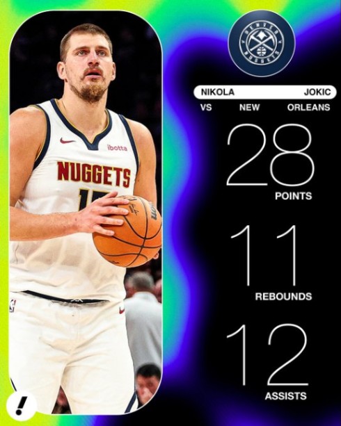 本場比賽,Jokic出戰34分鐘,18投10中(三分4中2)砍下28分11籃板12助攻,但同時還交出多達9次失誤。