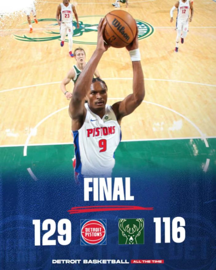 Cade Cunningham29分8籃板10助攻;Jalen Duren19分6籃板5助攻;Duncan Robinson15分3籃板。公鹿方面,Ryan Rollins24分5籃板7助攻;Bobby Portis18分7籃板2助攻;Kyle Kuzma13分3籃板2助攻。